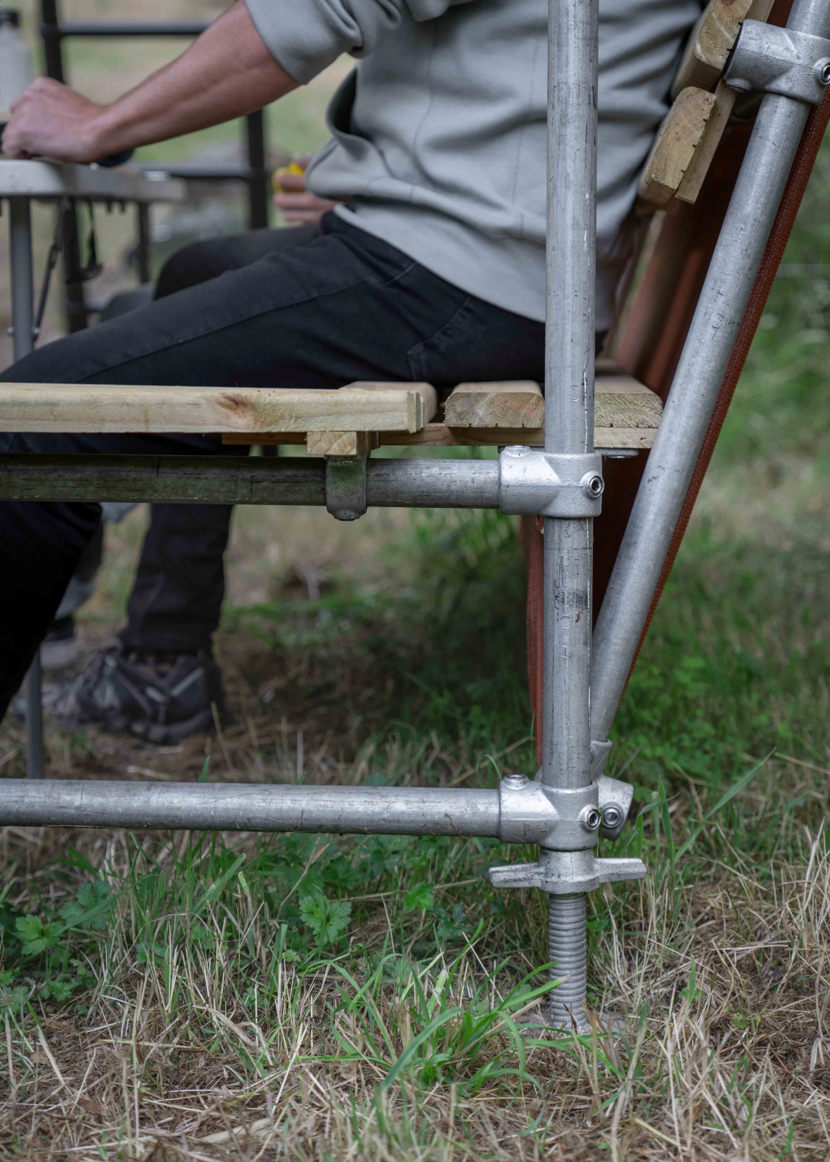 - Respaldo y banca de pino impregnado con tratamiento impermeabilizante.