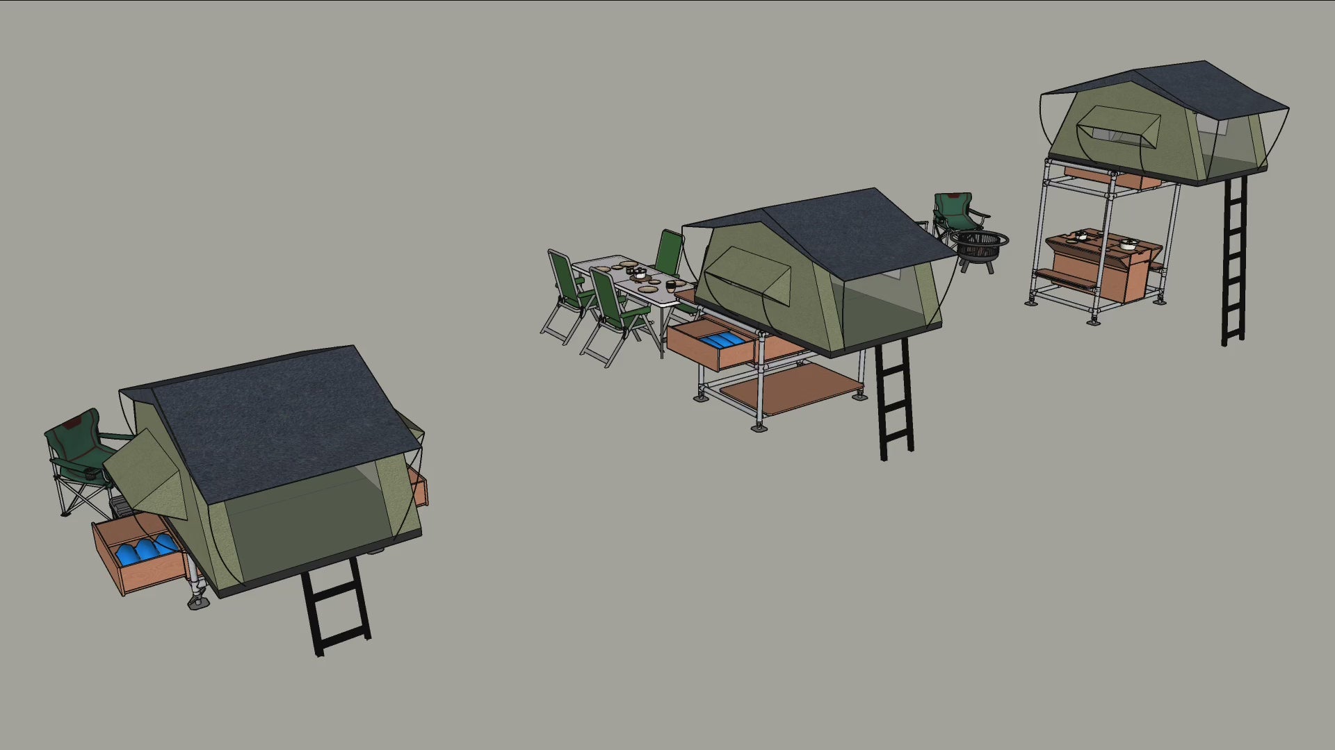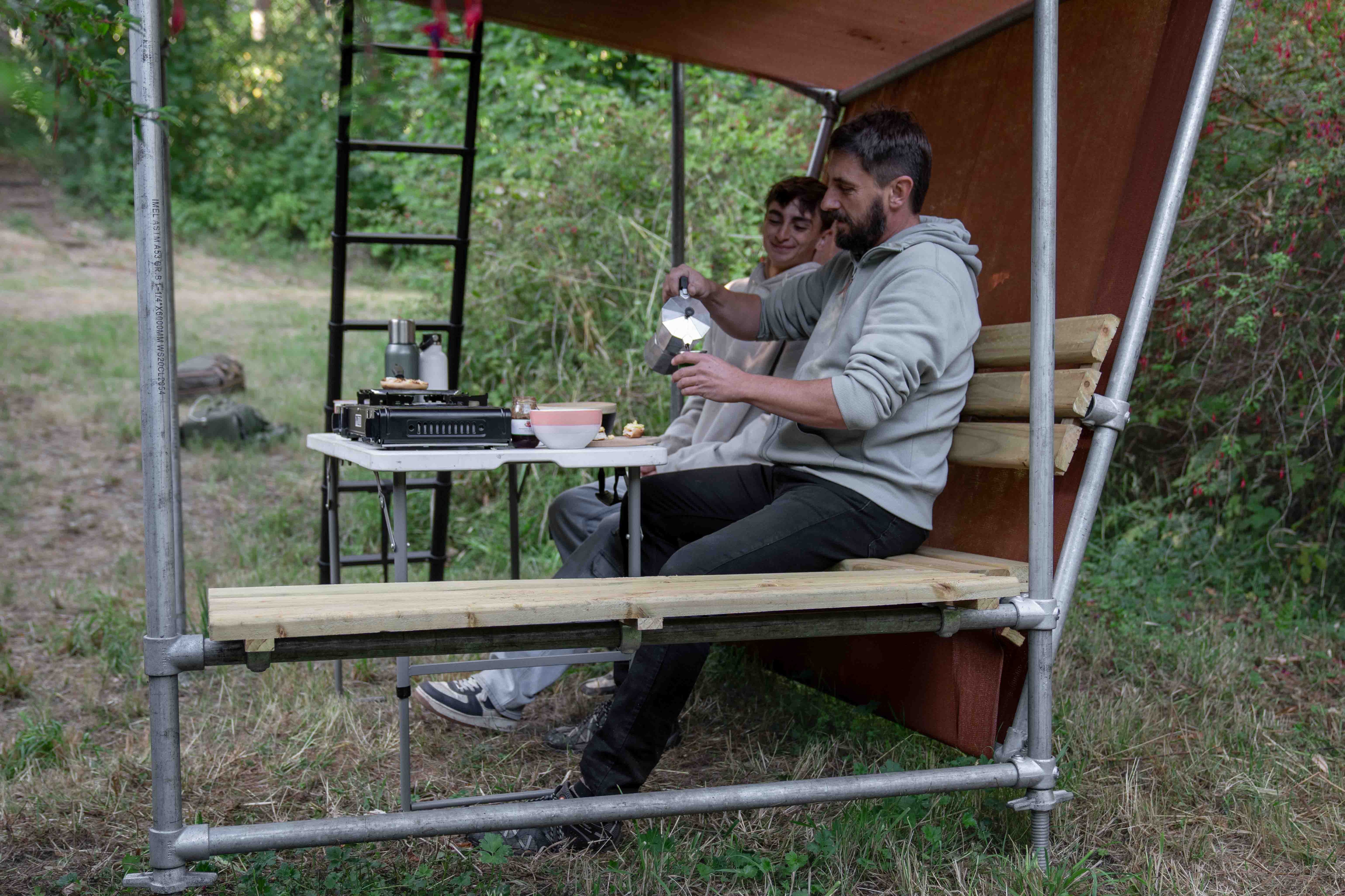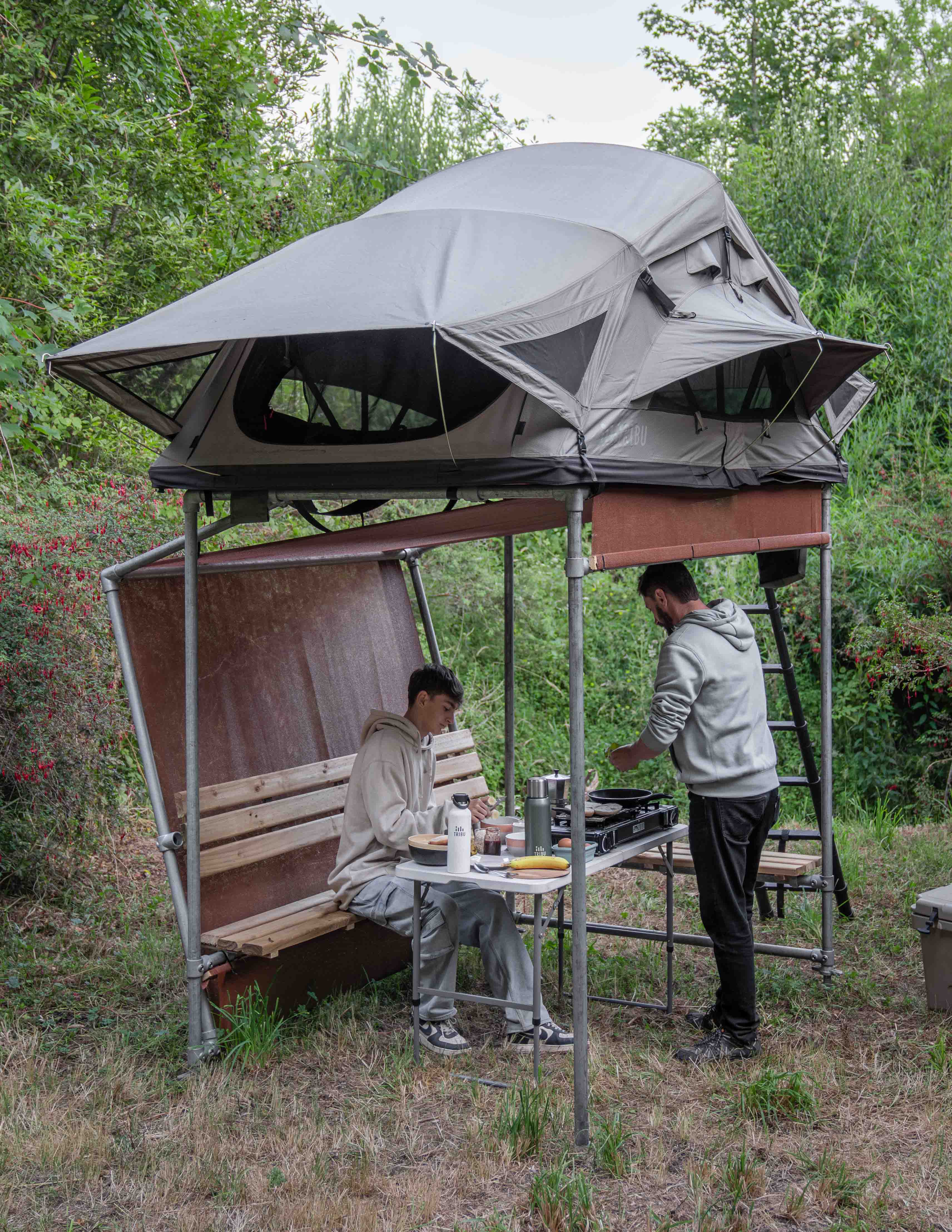 Esta estructura habitable se monta en minutos adaptándose a los desniveles topográficos, ofreciendo un espacio cómodo y funcional para descansar, cocinar y dormir, sin impactar el entorno natural.