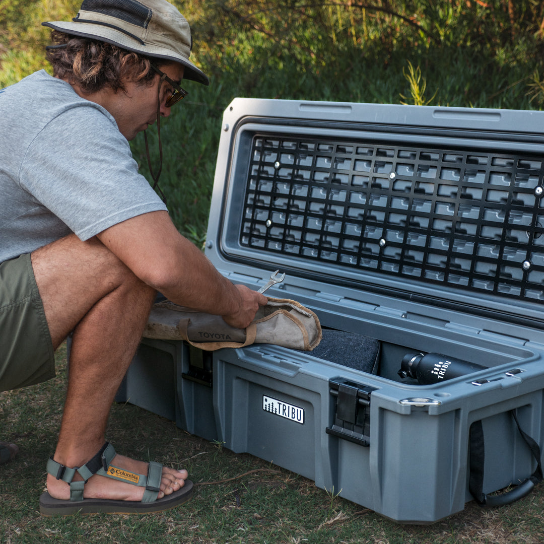 Caja ToolBox Rotomoldeada de 110 lts de capacidad con rejilla organizadora y abre botellas.