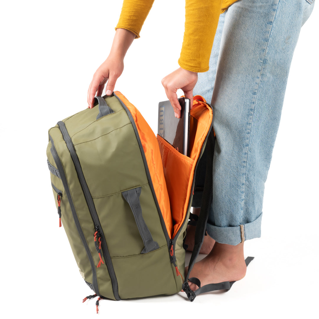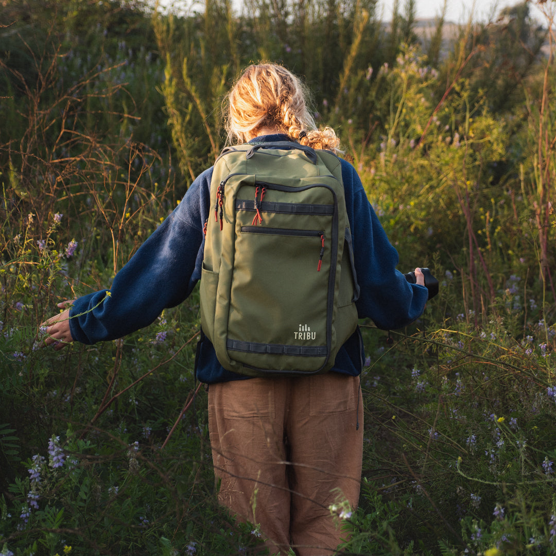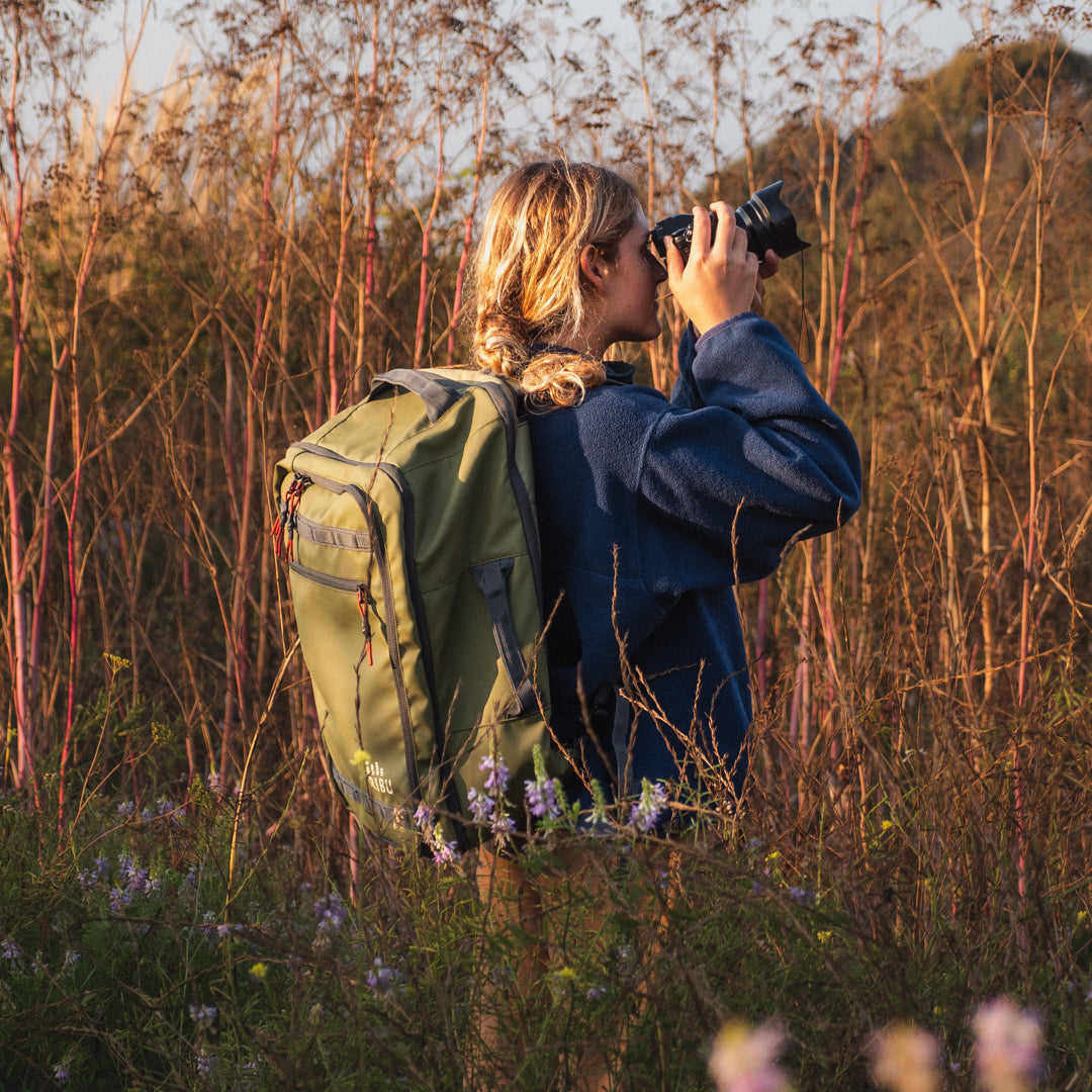 Cuenta con un bolsillo en la espalda para tu computador portátil, bolsillo lateral para que puedas llevar tu botella de agua, un compartimiento principal para que lleves tu ropa o equipo fotográfico, otro intermedio para organizar la bitácora con sus lápices, y uno exterior para tener un libro a mano.