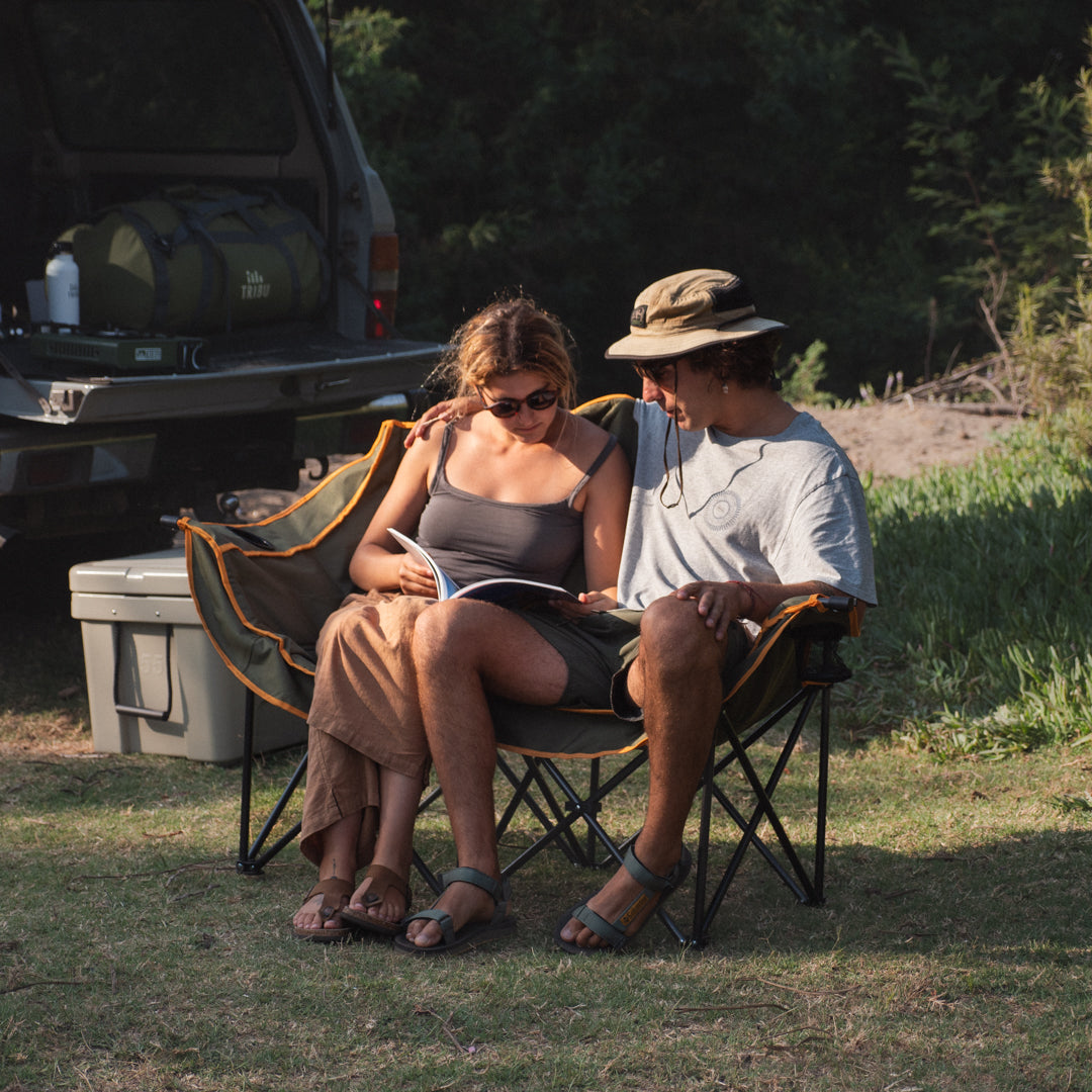 Esta silla de camping doble es lo mejor para parejas o familias numerosas. La abres en segundos y tienes un sofá de camping muy cómodo para ver el atardecer con tu compañero de viaje al lado. Incluye bolso para llevarla a todas partes.