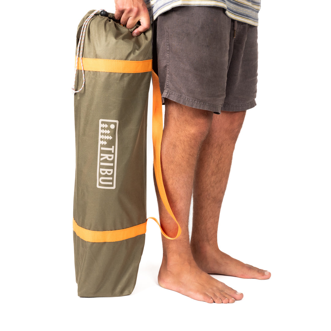 Esta silla de playa es pequeña y extremadamente cómoda. Te deja cerca del nivel del suelo para quedar listo para pasar horas mirando el mar, tomar sol o disfrutar de una fogata cuando acampes. Además cuenta con un espacio lateral para poder dejar tu cerveza. Incluye bolso para llevarla.